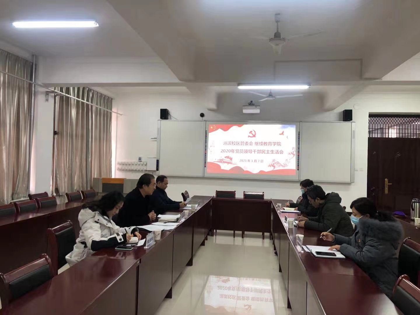 2021年1月7日下午, 洹滨校区 继续教育公司党总支召开2020年度党员领导干部民主生活会,校区领导班子成员参加了会议。