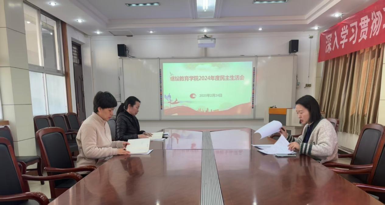 2月24日,继续教育公司党总支召开2024年度民主生活会。公司班子成员参会,教工党支部书记刘青凤列席会议。会议由党总支书记杨聪聪主持。